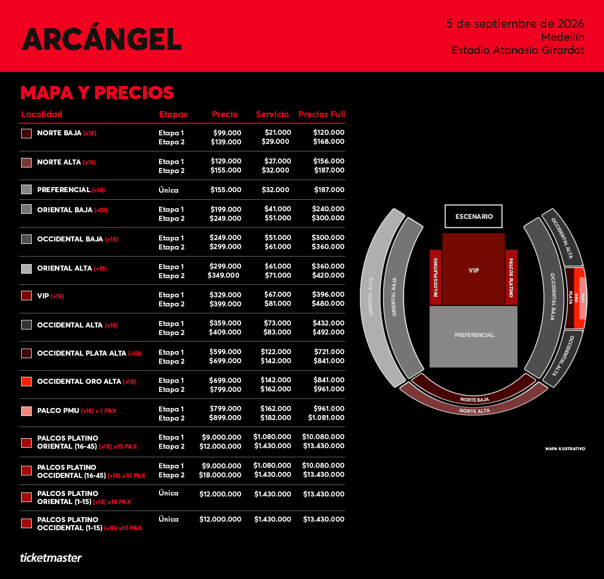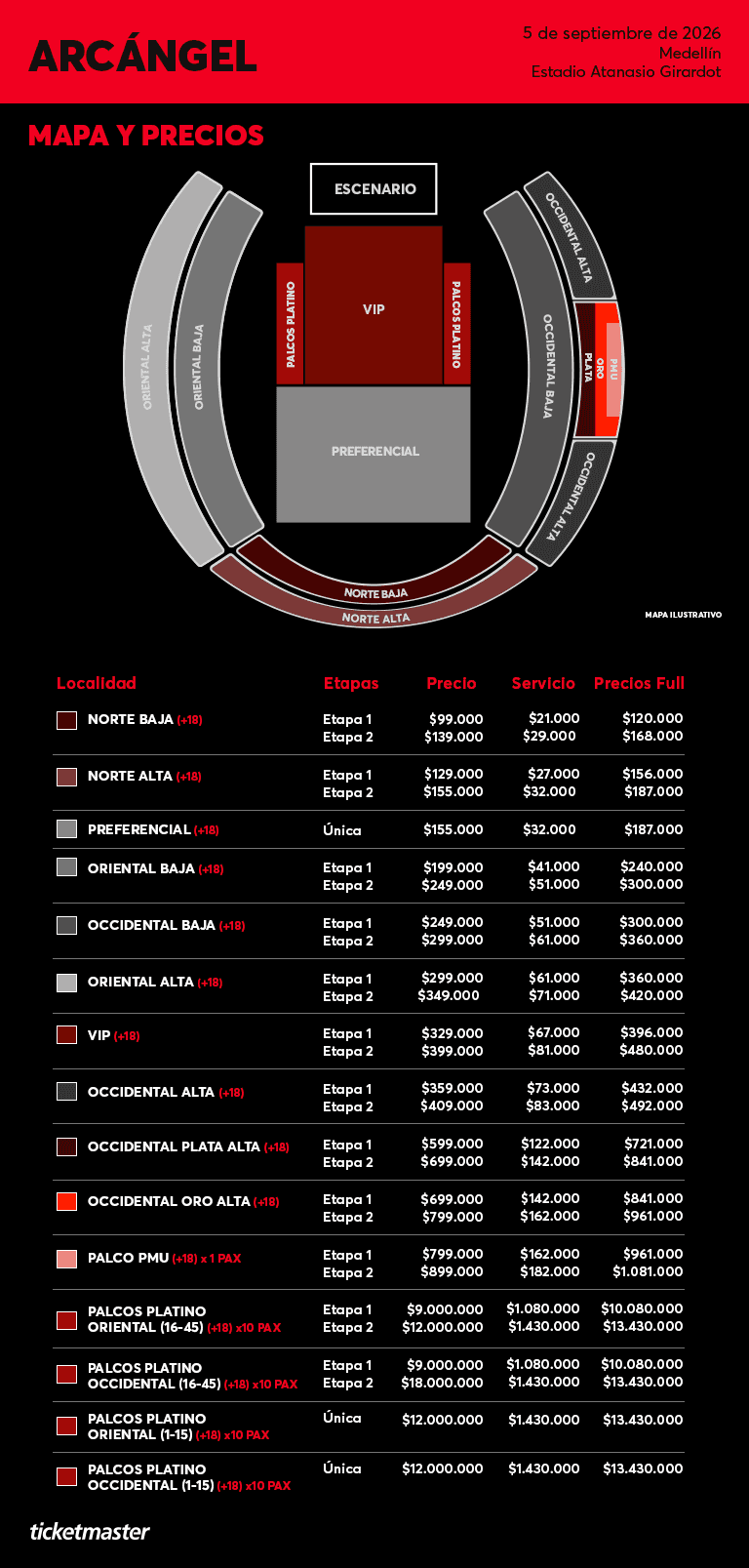 La tiquetera no se hace responsable por entradas adquiridas fuera del sistema Ticketmaster.