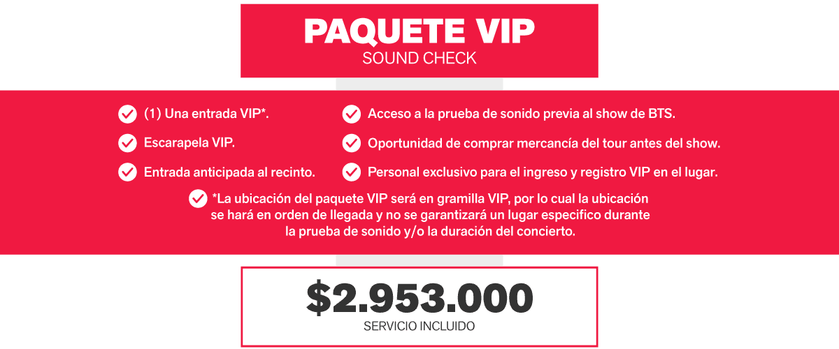 PAQUETE VIP – PRUEBA DE SONIDO BTS (GRAMILLA VIP)
