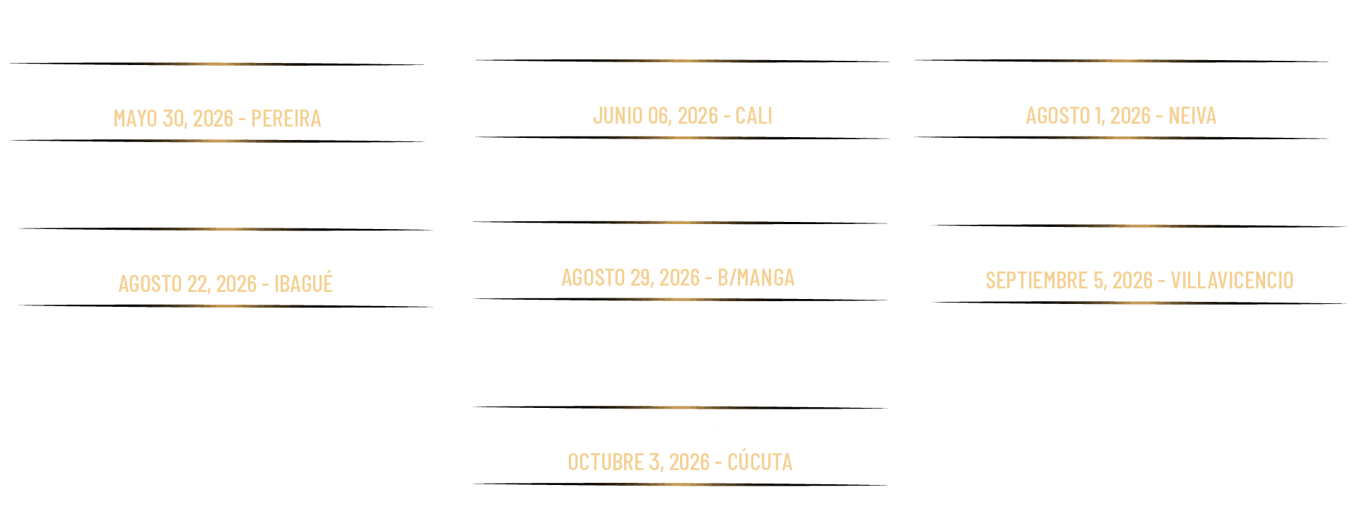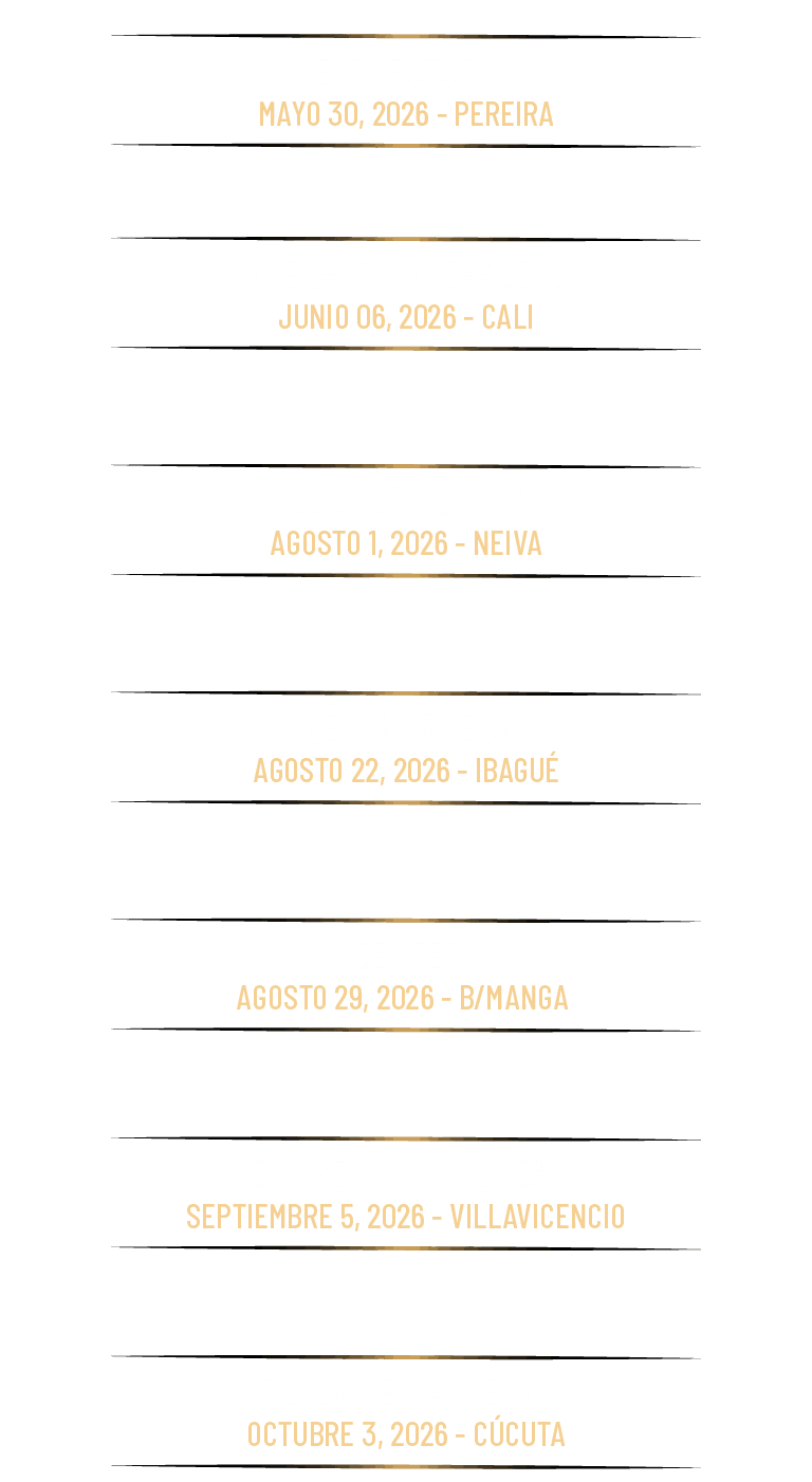 Una gira histórica que marcará el cierre oficial de su carrera artística en Pereira, Cali, Neiva, Ibagué, Bucaramanga, Villavicencio y Cúcuta.